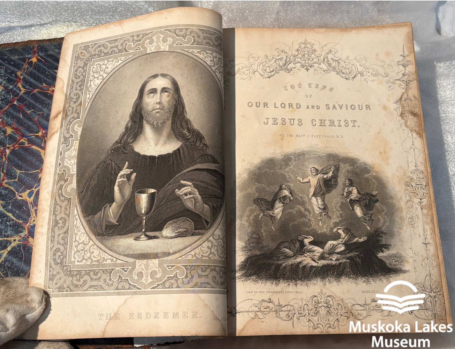 This is one of the oldest books in our collection: The Life of Our Lord and Saviour, published in 1858. The spine bears the title The Life of Christ. Its cover is comprised of black leather, which has aged over time, and the volume contains 992 pages.